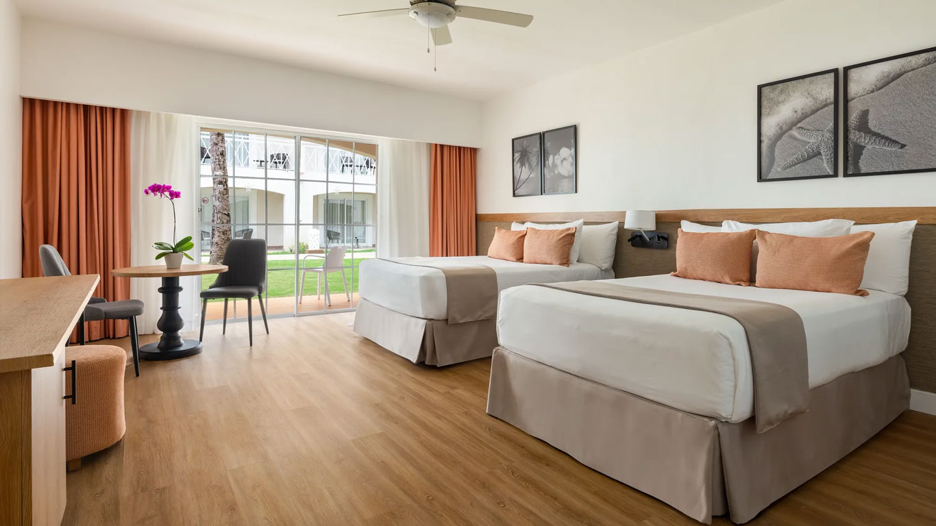 The Deluxe Pool View Rooms at Sunscape Coco Punta Cana measures 489.75sq. and comes with one king-size bed or two double beds, Private furnished balcony. Maximum occupancy: 3 guests (maximum adults 3). King room: Up to 2 guests (adults + children) with a maximum of 2 adults. Double room: Up to 3 guests (adults + children) with a maximum of 3 adults