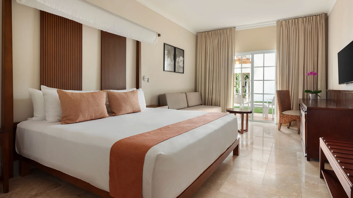 The Swim Out Sun Club Junior Suite Pool View at Sunscape Coco Punta Cana feature a private balcony with pool access. They measure 434.32 sq. ft. and comes with one king-size bed or two double beds, Private terrace. Maximum occupancy: 4 guests (maximum 2 adults). King room: Up to 2 guests (adults + children) with a maximum of 2 adults. Double room: Up to 3 guests (adults + children) with a maximum of 3 adults