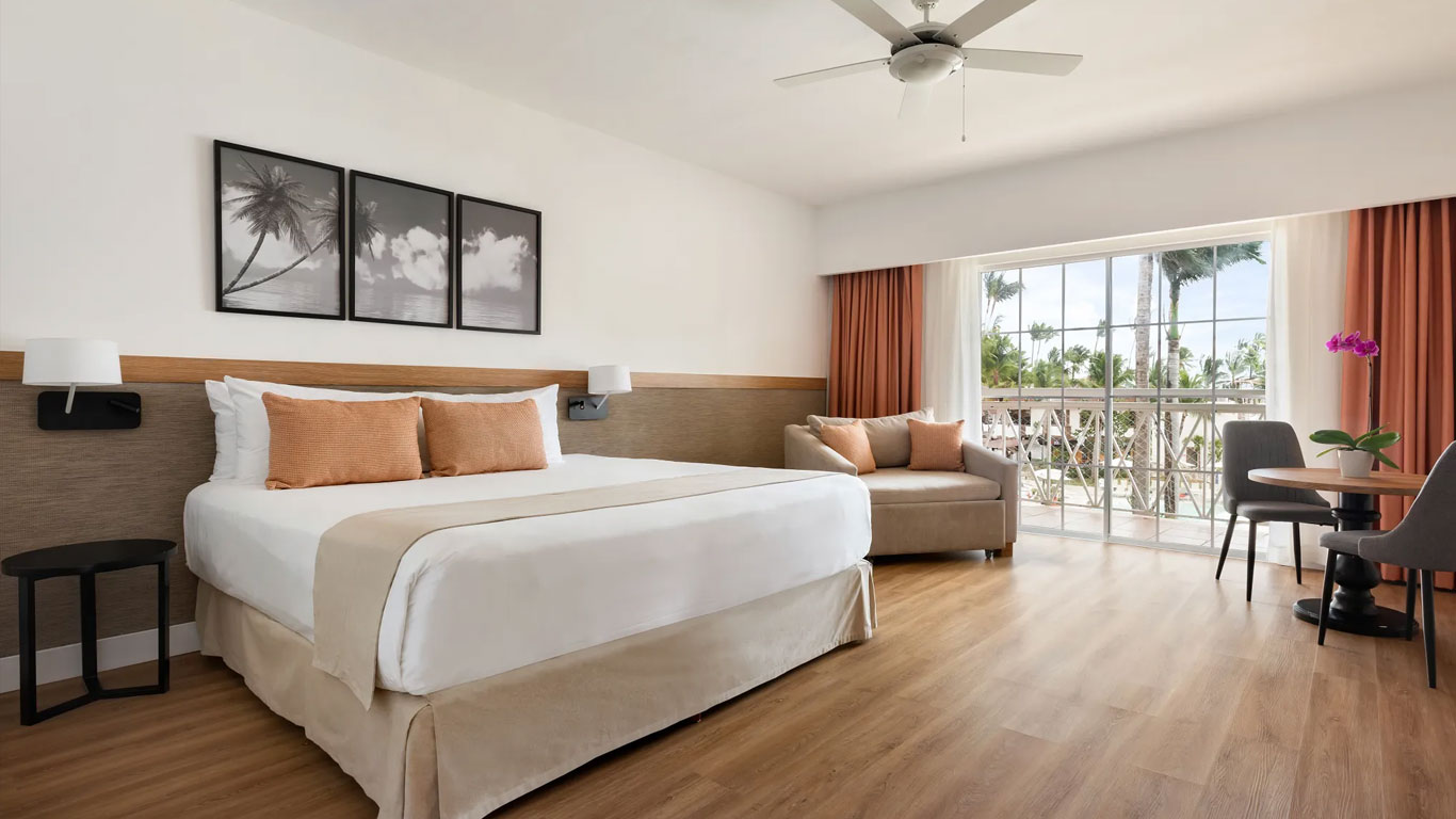 The Sun Club Junior Suite Tropical View King at Sunscape Coco Punta Cana measure 600 sq. ft. and comes with one king-size bed or two double beds, Private terrace. Maximum occupancy: 4 guests (maximum 2 adults). King room: Up to 2 guests (adults + children) with a maximum of 2 adults. Double room: Up to 3 guests (adults + children) with a maximum of 3 adults